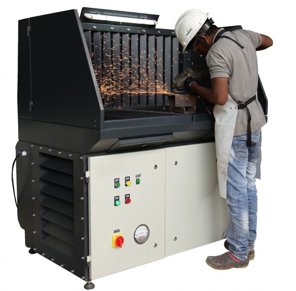 Downdraft and backdraft workbench is used to capture dust and fume particles during grinding, Plasma cutting, welding and other medium to heavy duty applications. Downdraft table can be used to capture the welding fumes effectively with the help of downdraft and backdraft fume extraction. Downdraft grinding table removes fumes and dust generated during the grinding process through the working surface and backdraft panel. Downdraft fume extractor is suitable for many applications like grinding, welding and plasma cutting process. Downdraft welding table has three way spark arrester system, captures the sparks before it get into the filter chamber.